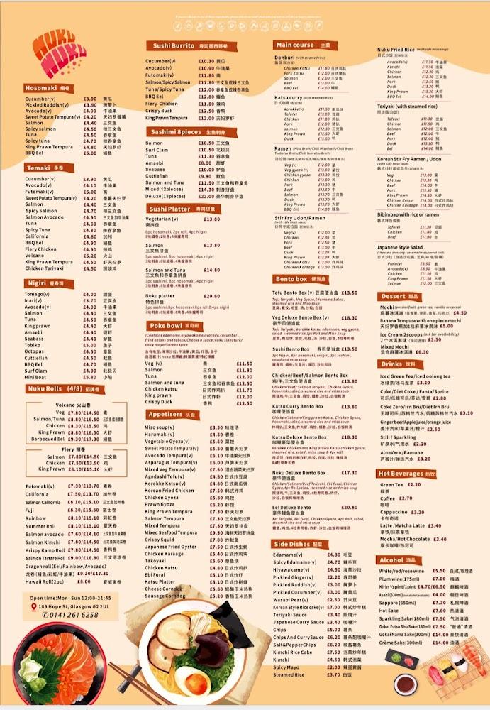Located at 189 Hope St, Glasgow G2 2UL, Nuku Nuku is perfectly situated near the city center, making it an accessible choice for busy locals and visitors alike. This casual eatery boasts a trendy atmosphere with a warm and cozy décor, ideal for catching up with friends after a long day or enjoying a quiet dinner alone. The establishment is wheelchair accessible, providing comfort to all patrons. A variety of seating options is available, including table service, and families with children will find this place welcoming. Nuku Nuku shines in the lunchtime rush, drawing in a mix of office workers and tourists eager for quick and satisfying meals. Its laid-back environment encourages diners to linger over delicious dishes, whether it’s miso soup before a main course or a sweet treat to finish.